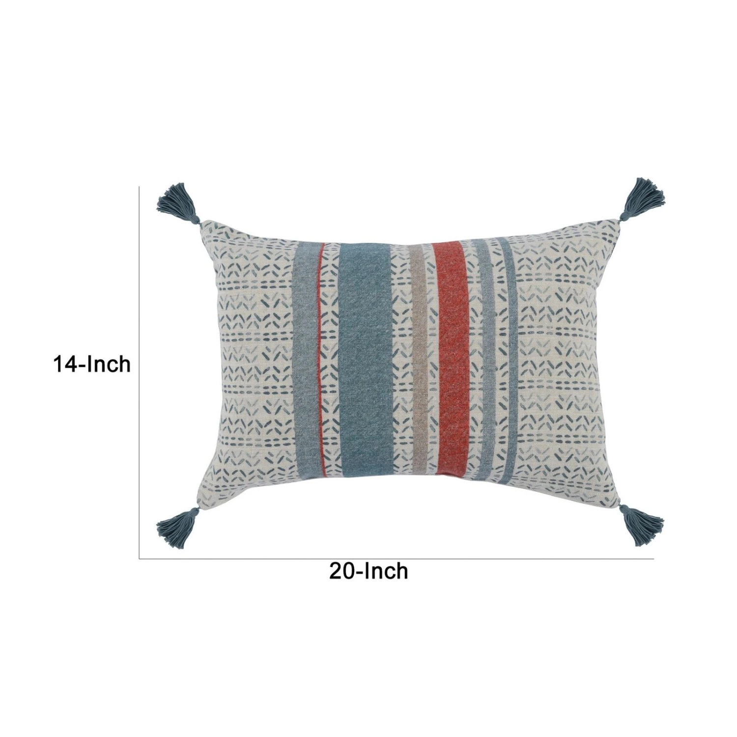14 x 20 Modern Throw Pillow, Digitally Printed, Stripes, Tassels, Blue, Red-Benzara