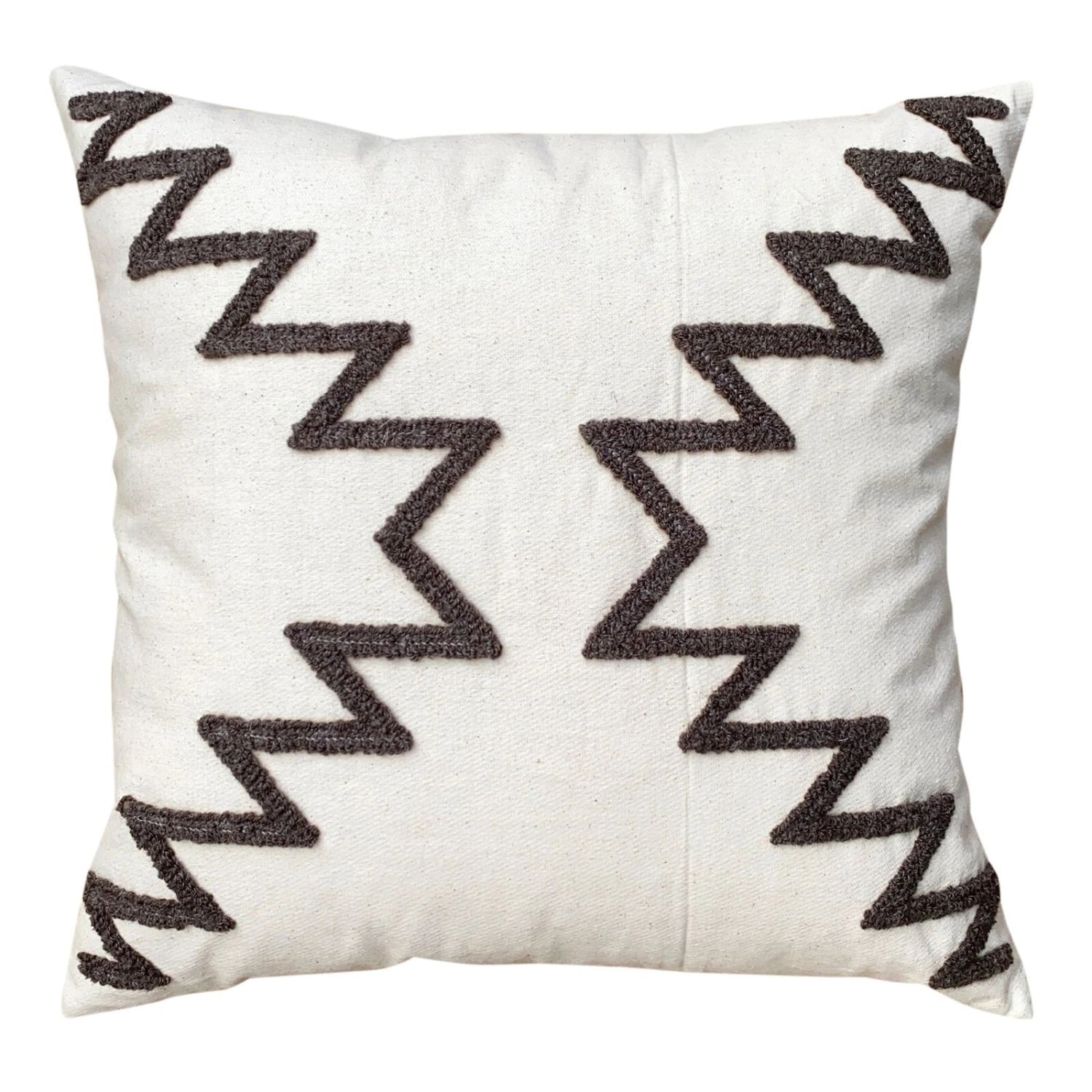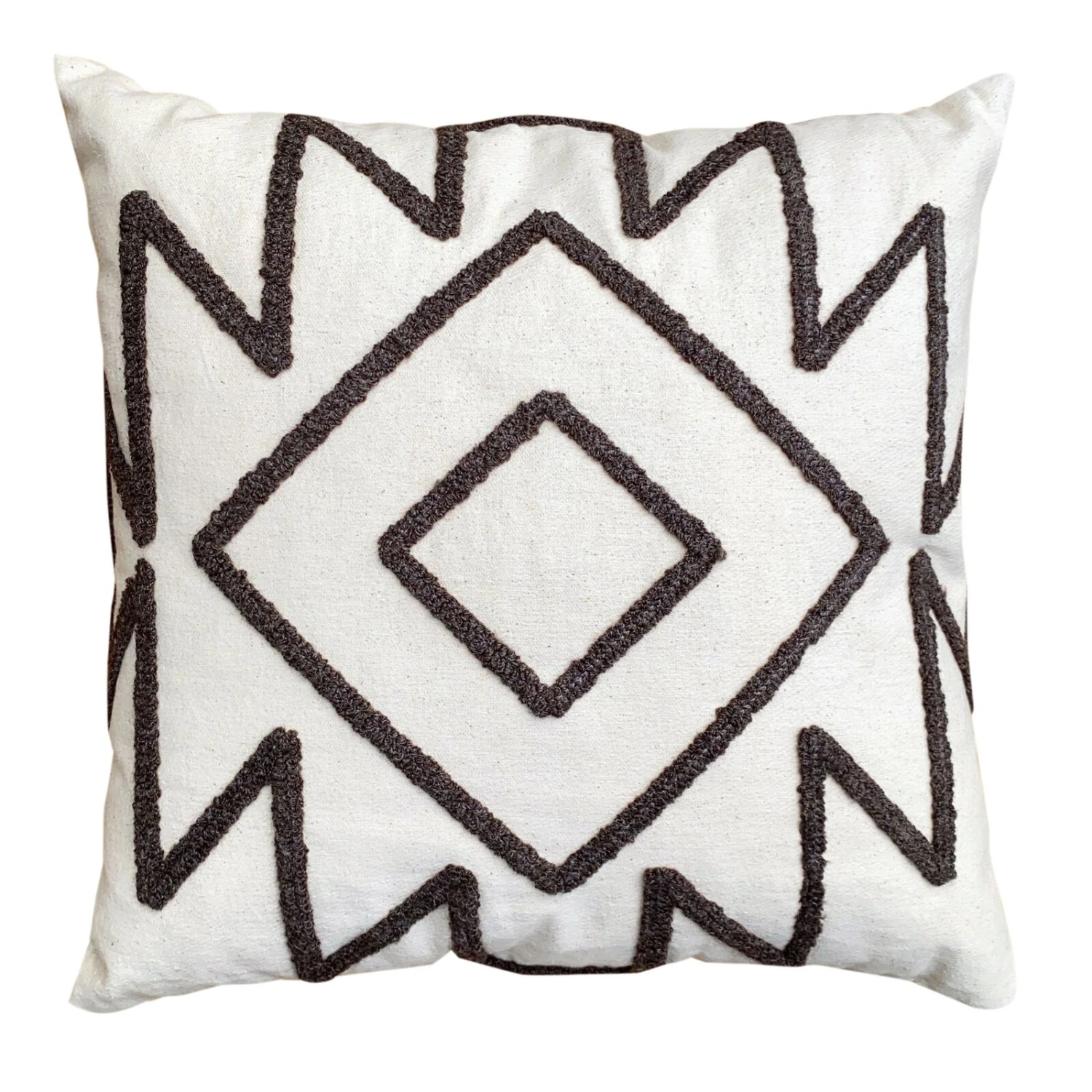 Perfect for budding decorators with warm, cozy, intimate aspirations, this two pieces accent throw pillows in a set of 2 set with embroidery and zip closure is sure to fill your seating space with charm and welcome. The hand embroidered modern geometric Aztec style pattern gives this complementary accent pillow set a simple yet bold touch of class, fitting beautifully with a variety of furniture in your home. With a soft cotton cover, the embroidery yarn used is a blend of equal parts cotton and wool. The gray yarn accentuates the white tone fabric perfectly and it is an ideal choice for pairing with any seating space to accentuate or contrast your home decor. It is filled generously with soft silicone beads for very plush and relaxing comfort.