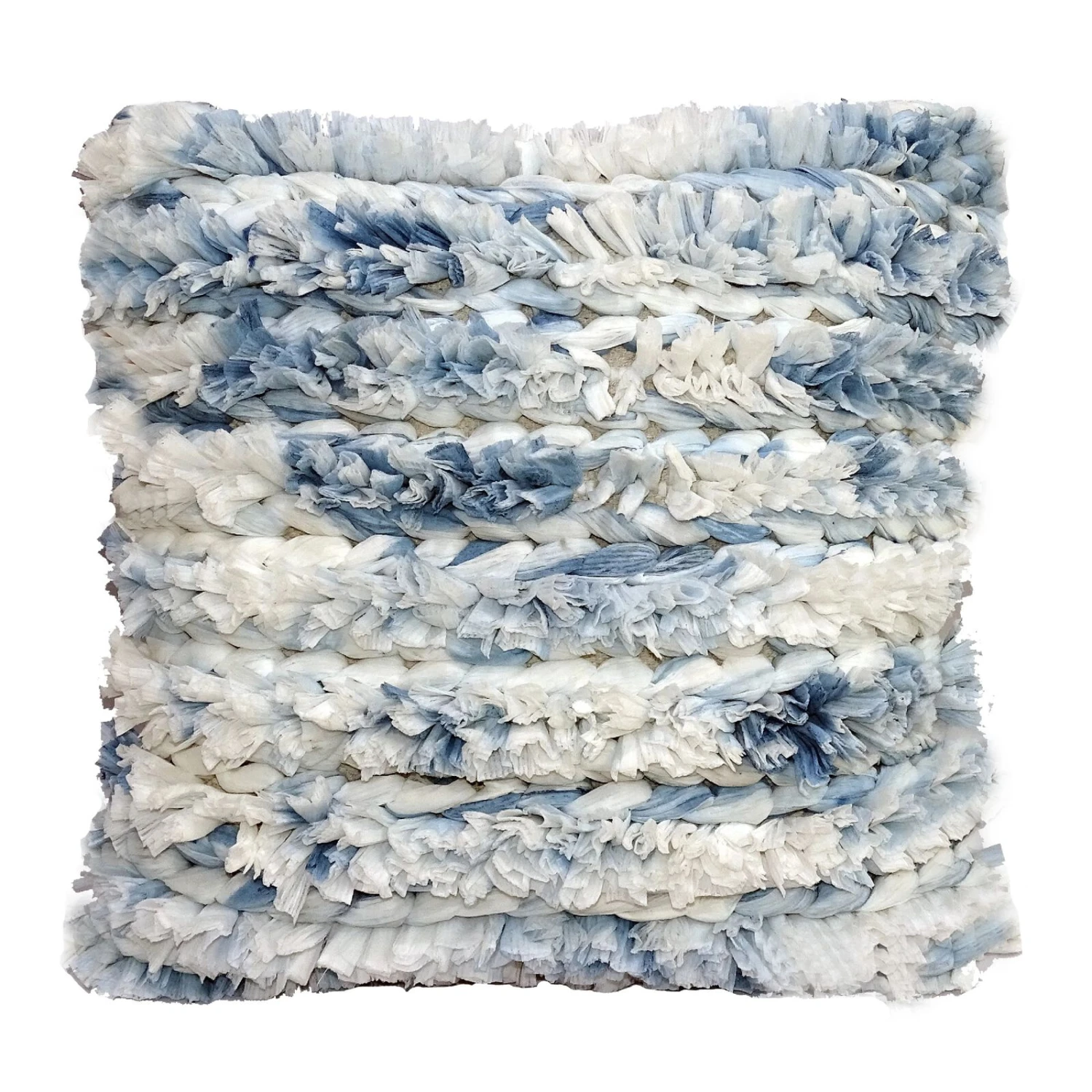 20″ White and Blue Fluffy Handloomed Throw Pillow
