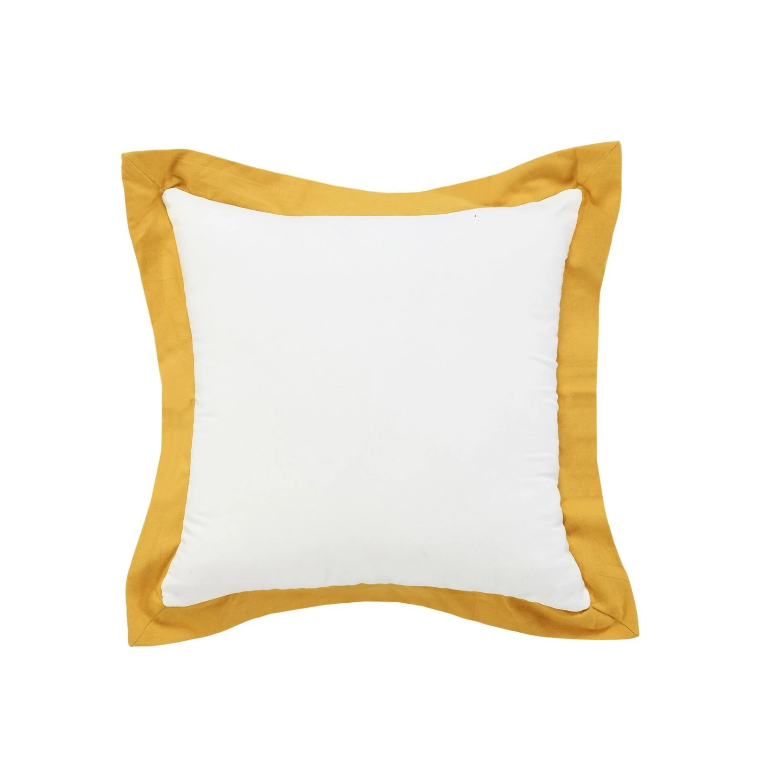 20″ White and Yellow Bordered Flange Frame Square Throw Pillow