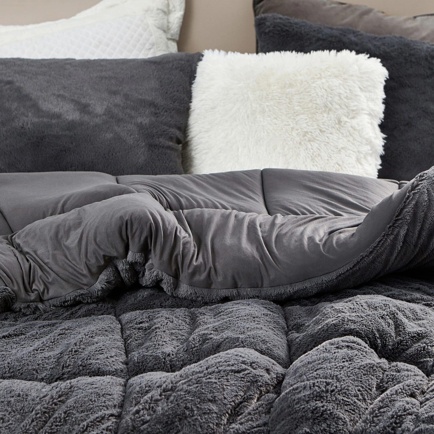 Material: Thick, Wild Luxury Plush in Charcoal Gray