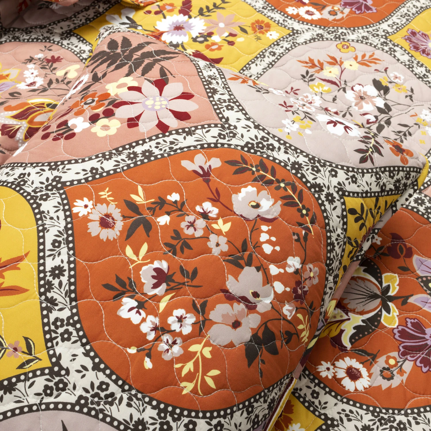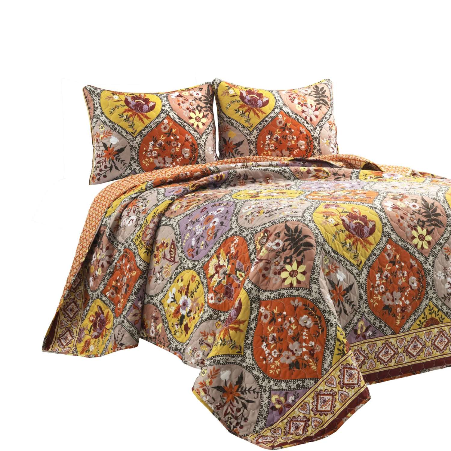 Bohemian Flower Reversible Oversized Cotton Quilt 3Pc Set