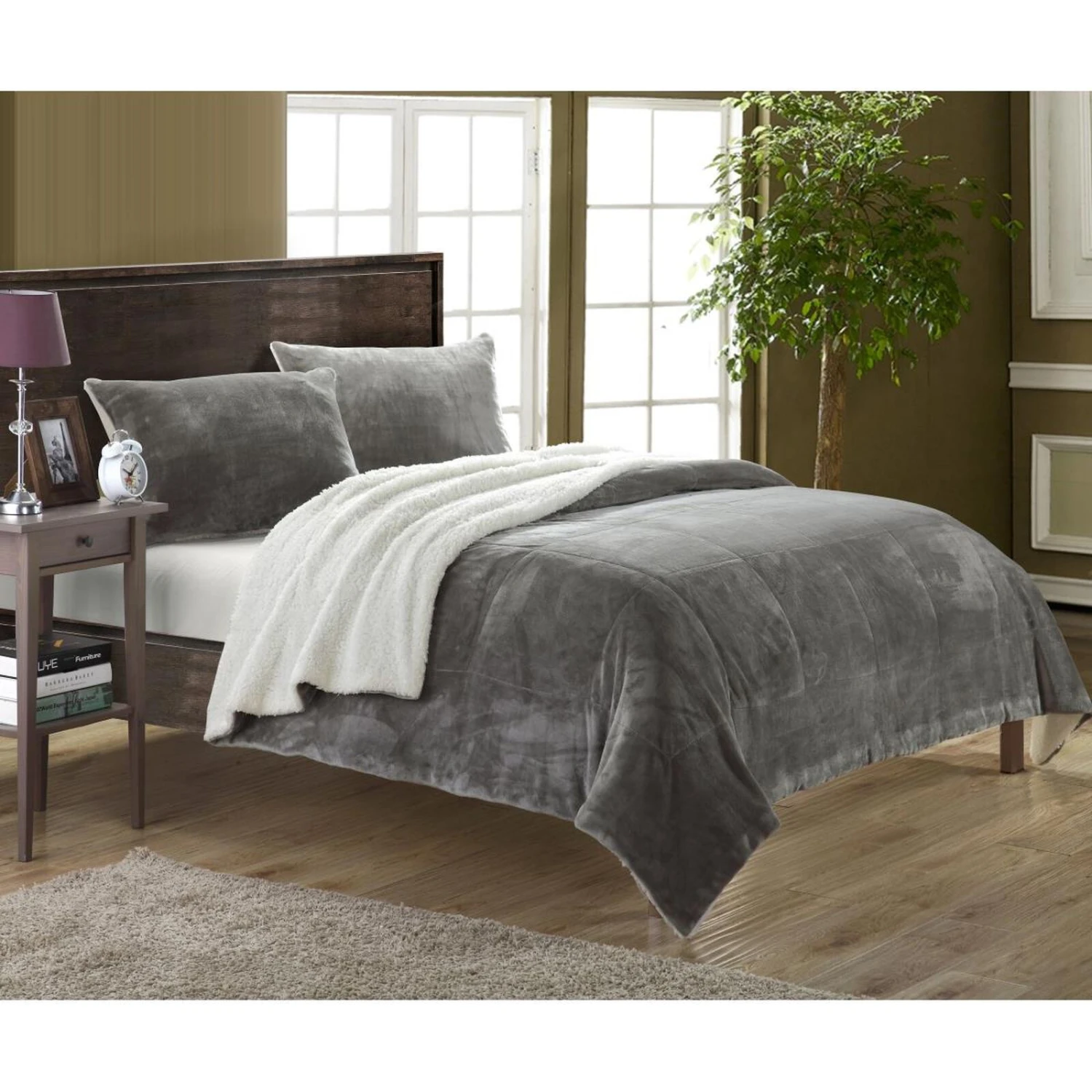 Chic Home 7 Piece Eve Microplush MinkLike Super Soft Sherpa Lined King BedBag Comforter Set, Grey with Sheet Set