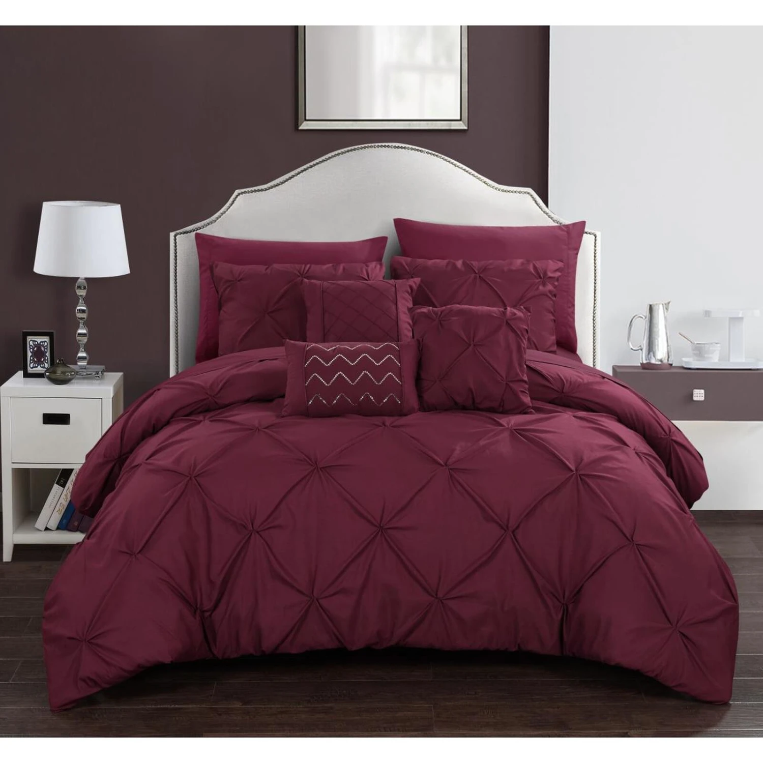 Chic Home BCS10315-US King Size Zita Comforter Bed Set, Burgundy – 10 Piece