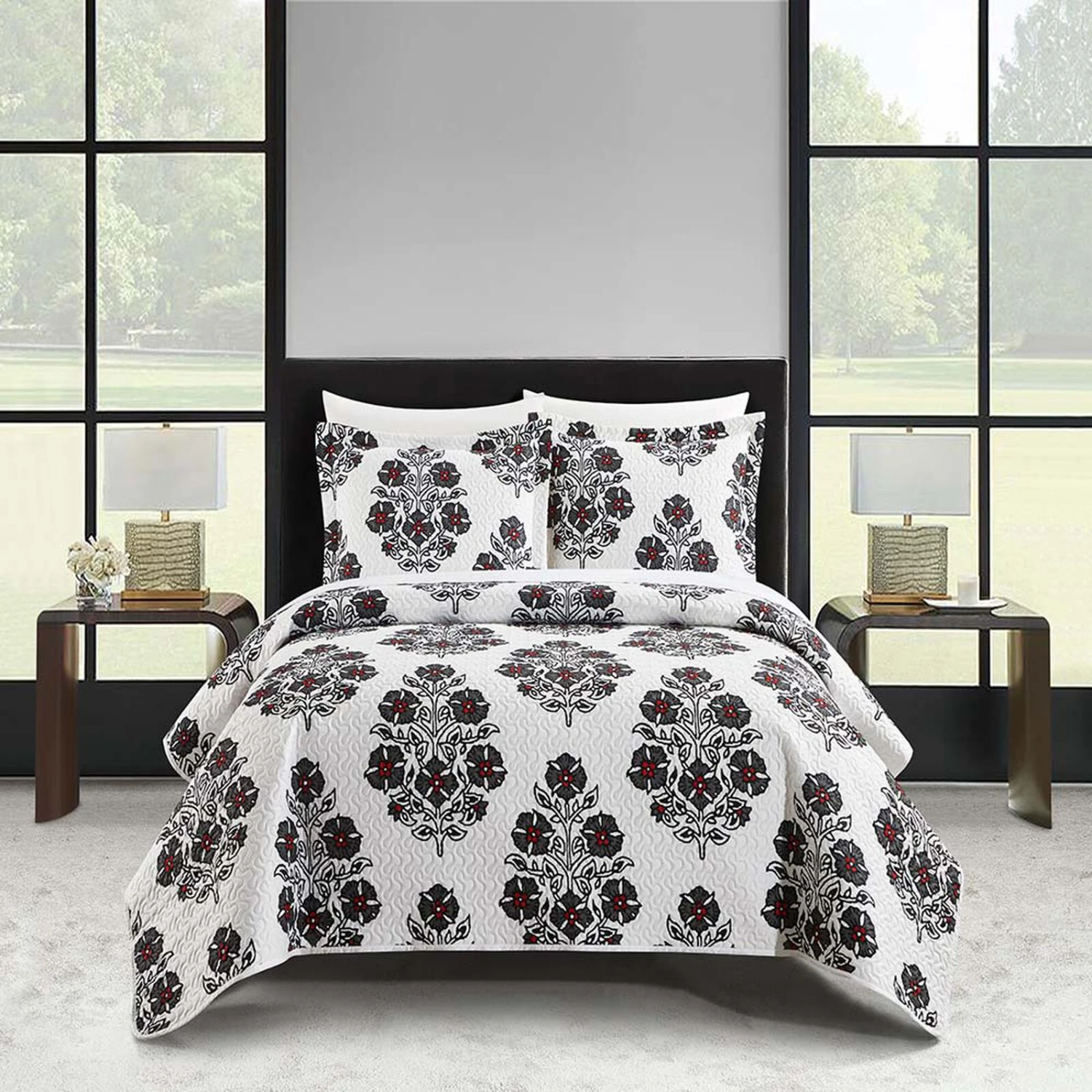 Chic Home Morris Quilt Set Large Scale Floral Medallion Print Design Bed In A Bag Bedding Grey