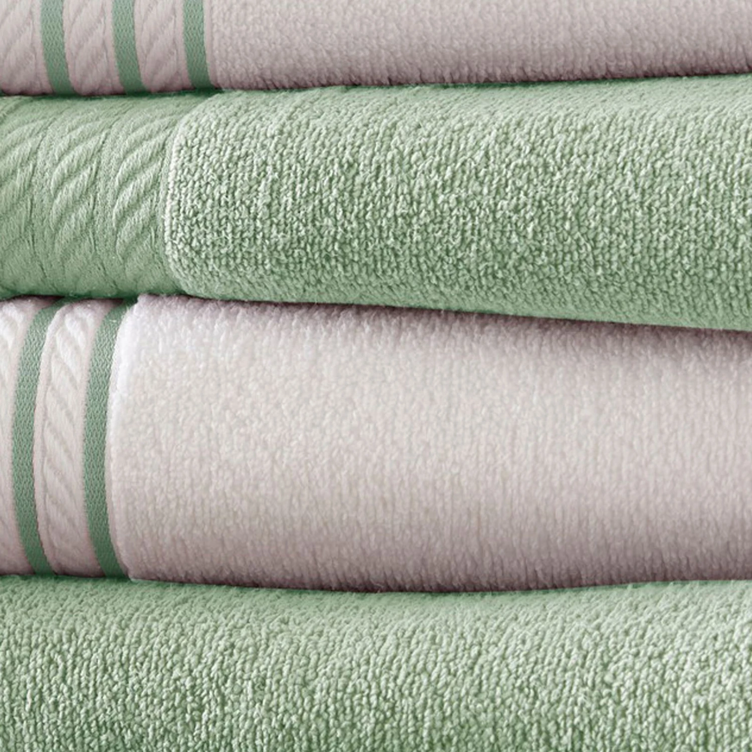 Dana 6 Piece Soft Egyptian Cotton Towel Set, Striped, Sage Green, White-Benzara
