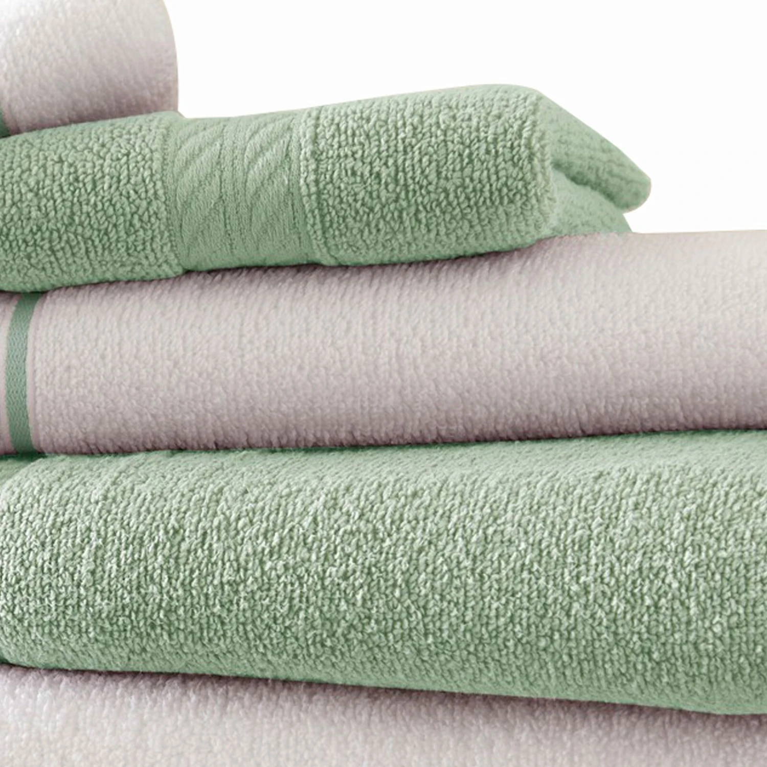 - Set consists of two bath towels, two hand towels, and two wash towels