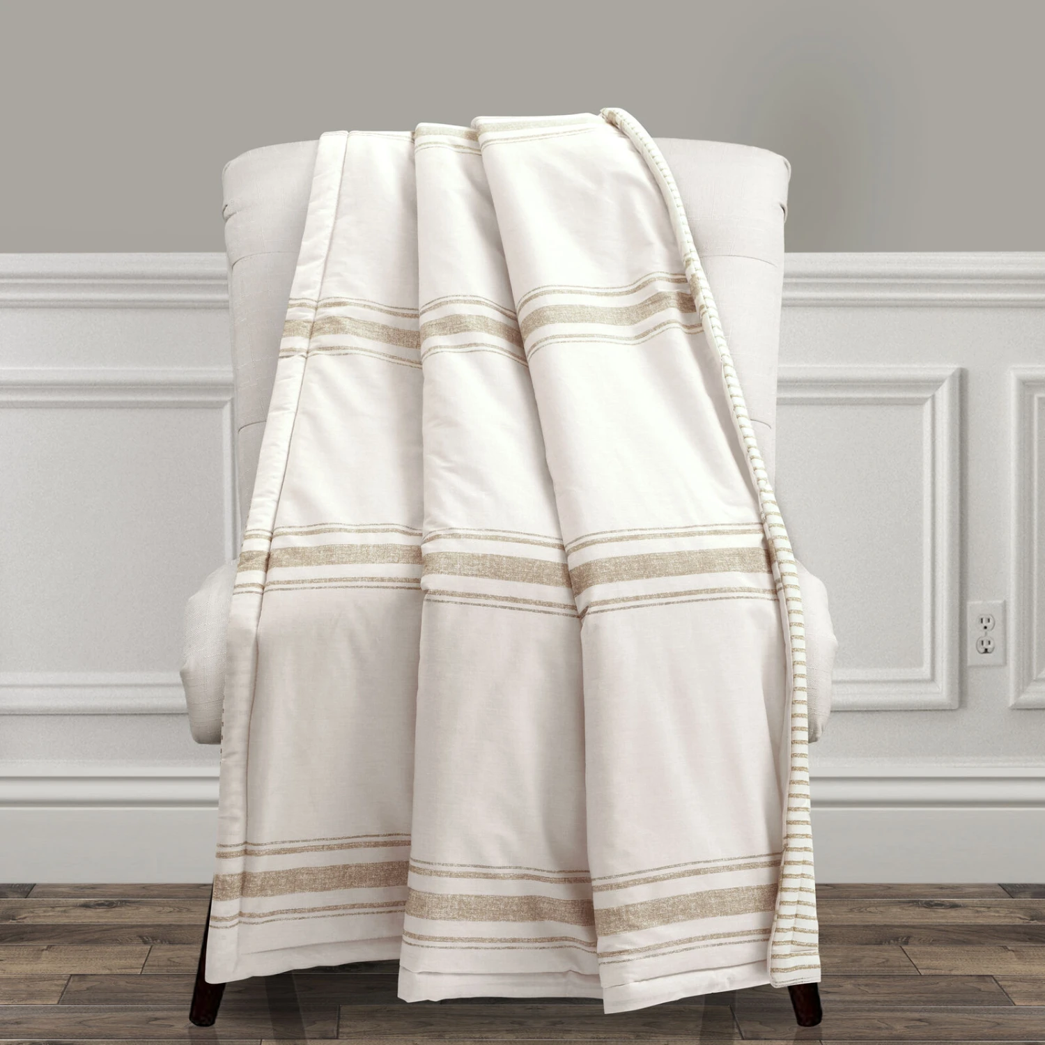 There is no easier way to add traditional farmhouse style to your home than with this reversible cotton throw. The printing on the front is reminiscent of shiplap beams. The back features a pinstripe print. This throw would look great on a bed or sofa.