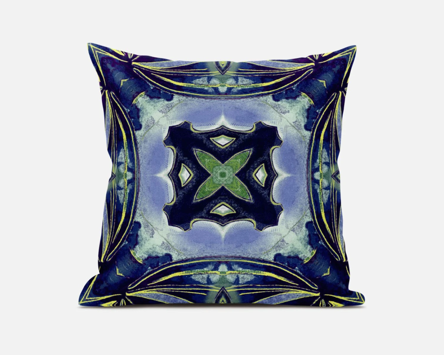 16″ X 16″ Peacock Blue Light Blue Geometric Zippered Suede Throw Pillow