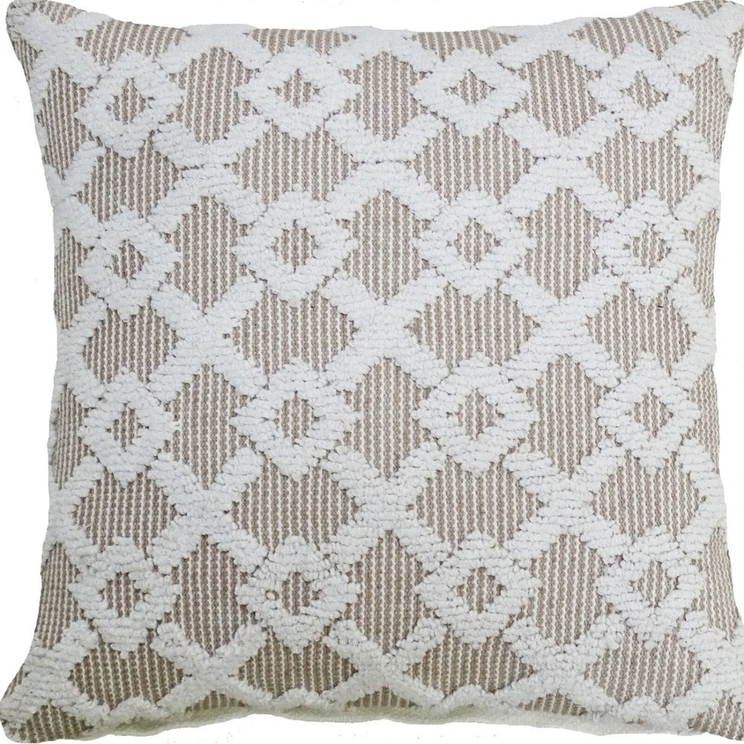 20″ X 20″ White And Beige Trellis Zippered Cotton Blend Throw Pillow