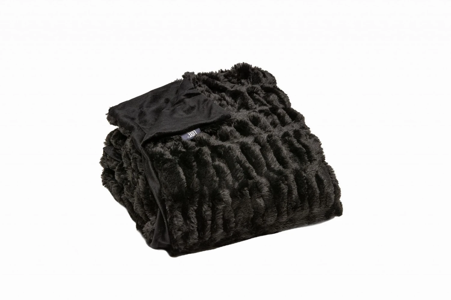 Wrap yourself in decadent softness and luxury with our Chunky Sectioned Black Faux Fur Throw Blanket. Beautifully replicating the natural weight and thick luxurious pile of genuine fur, this incredible blanket is the ultimate in cozy warmth, rich texture, and sophistication. A perfect accent for your favorite chair, the sofa, or bed, this blanket will drape you in luxury that is animal free. Made of polyester and spandex, the chunky sectioned faux fur on one side and a soft micro fleece on the other, this super endulgant and thick blanket will be your go to for style and warmth. The black on black makes this throw exceptionally striking and divine. 1.5″ x 60″ x 50″