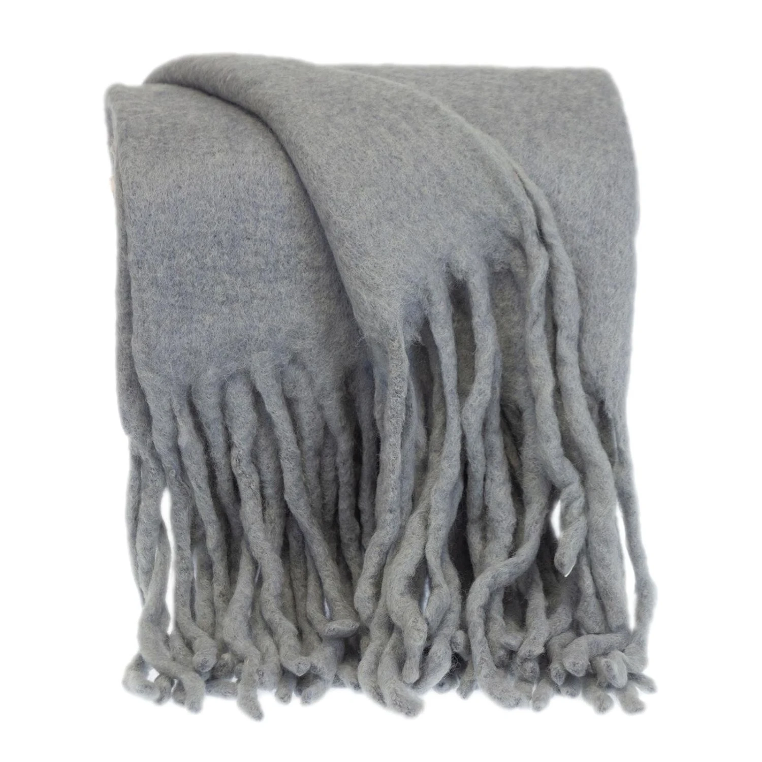 Gray Knitted Acrylic Solid Color Reversable Throw