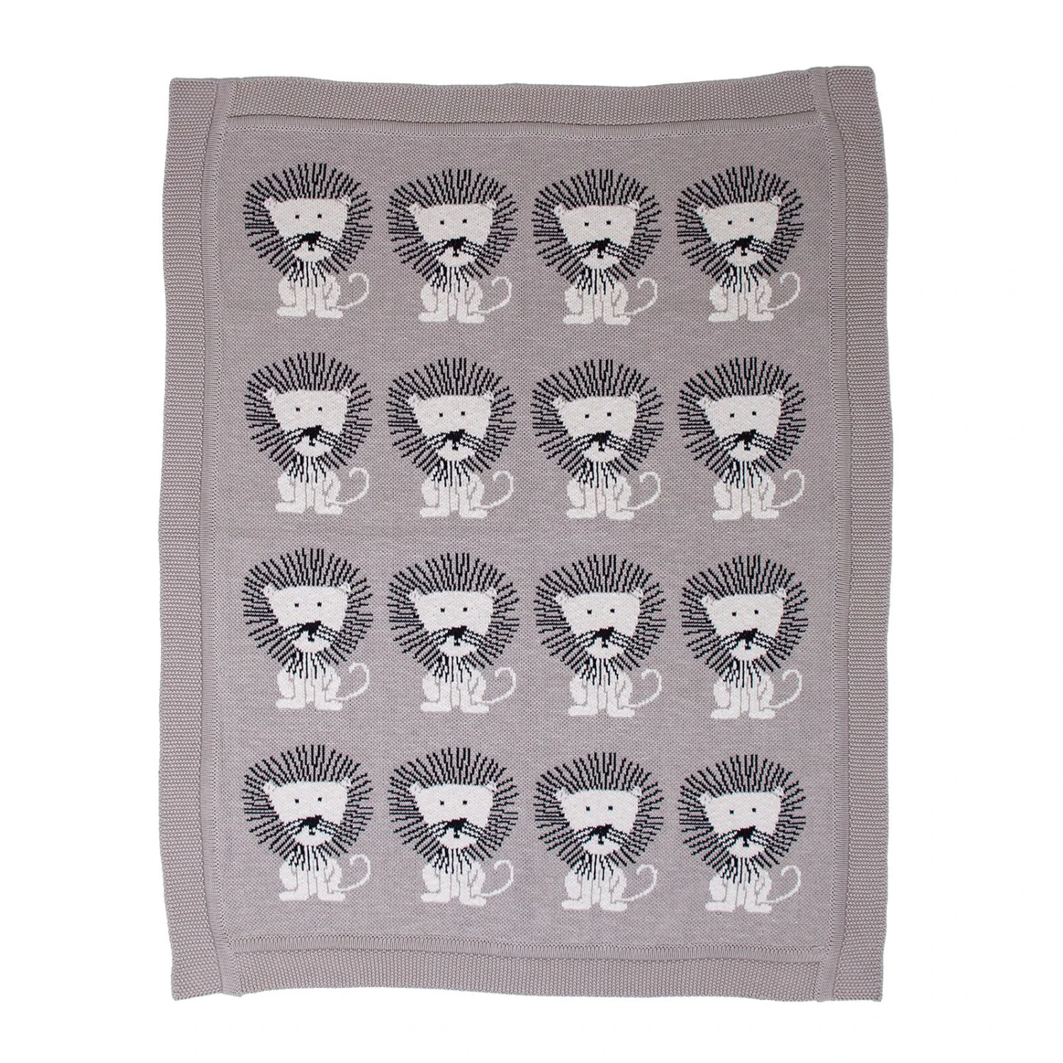 Grey Lots Of Lions Woven Knitted Baby Blanket