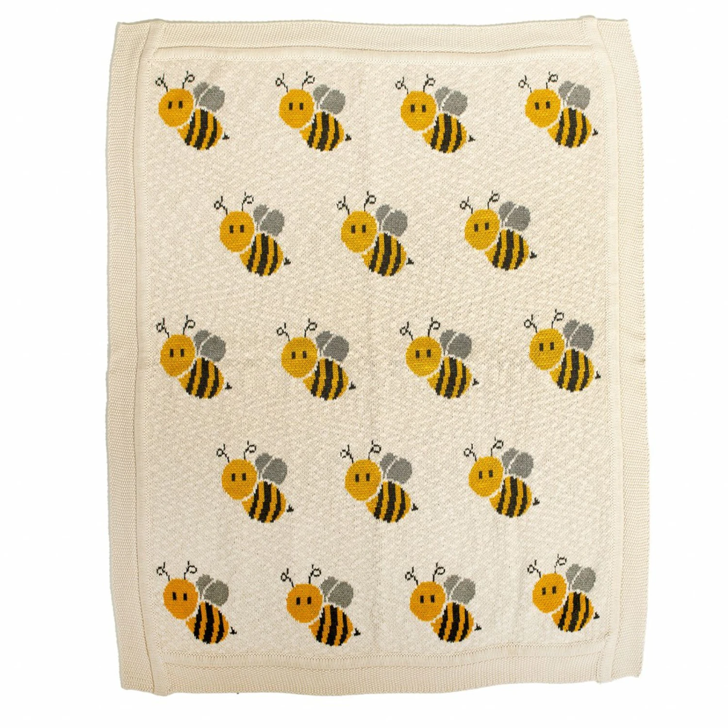 Get this assiduously crafted Ivory Honeybee Knitted Baby Blanket and express love with your baby. This beautiful baby blanket is lightweight and features little busy buzzing bees. Neutral in tone, this swaddling blanket is soft, stretchy, and made up of 100% cotton. Due to its gentleness and unique look, this stylish baby blanket is a perfect companion for your loved ones. 32″ x 40″