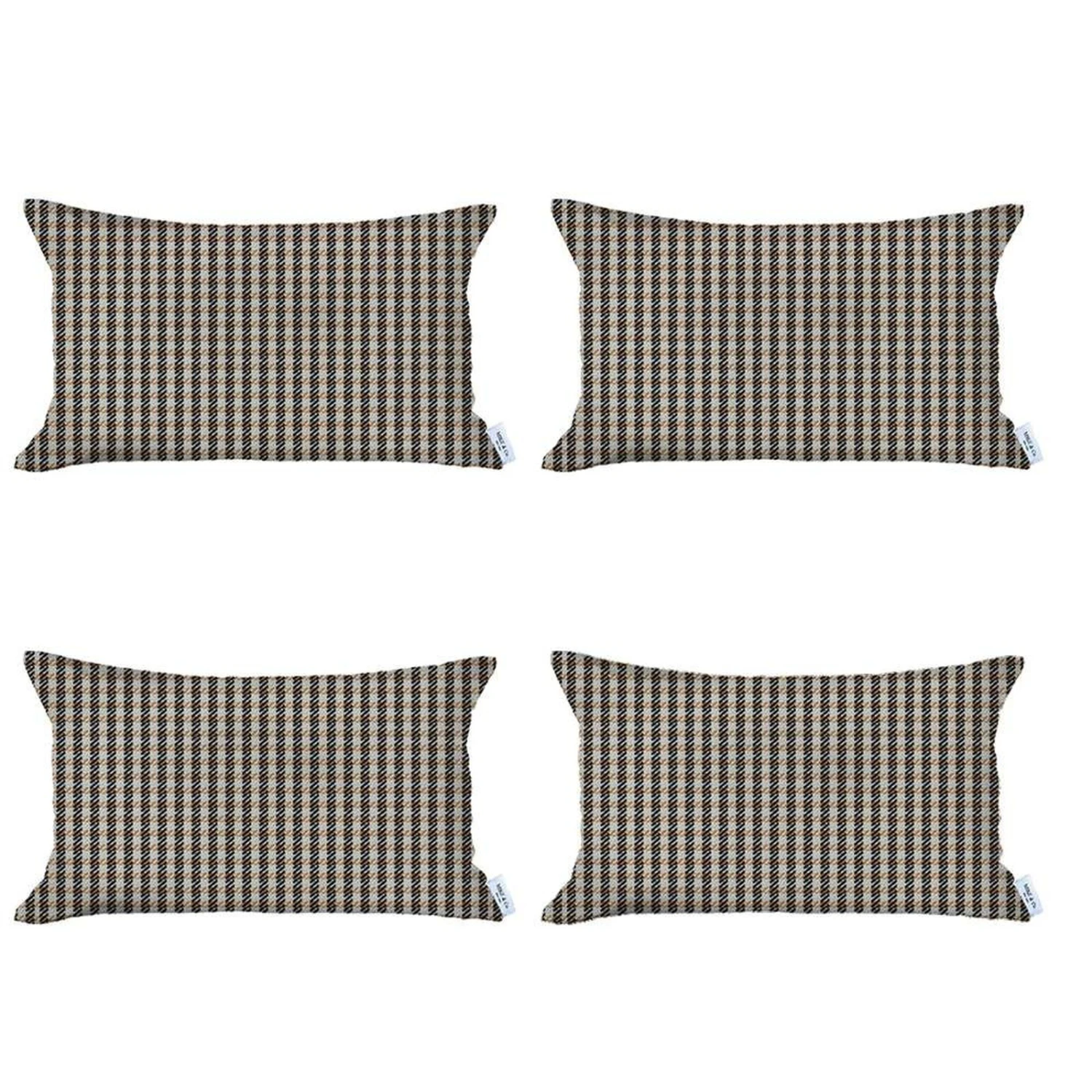 Upholding a rich and luxurious vibe, this Set of 4 Peach Houndstooth Lumbar Pillow Covers will be a sophisticated addition to any modern or contemporary setting. Featuring the classy houndstooth checkered pattern in black and brown over a pale peach base, each cover accentuates an elegant combination. Flaunting the creativity of Turkish artisans, these pillow covers are handmade of OEKO-TEX Standard 100 certified polyester fabric to ensure quality and product safety that will last for ages with low maintenance. The hidden zipper closure adds to a smooth finish for a soft and sumptuous feel on the touch. Besides serving as a sophisticated accent to complement any furniture, this set of lumbar pillow covers will enrich the ambiance of any modern or contemporary living space. 12” x 20” each. Set of 4.