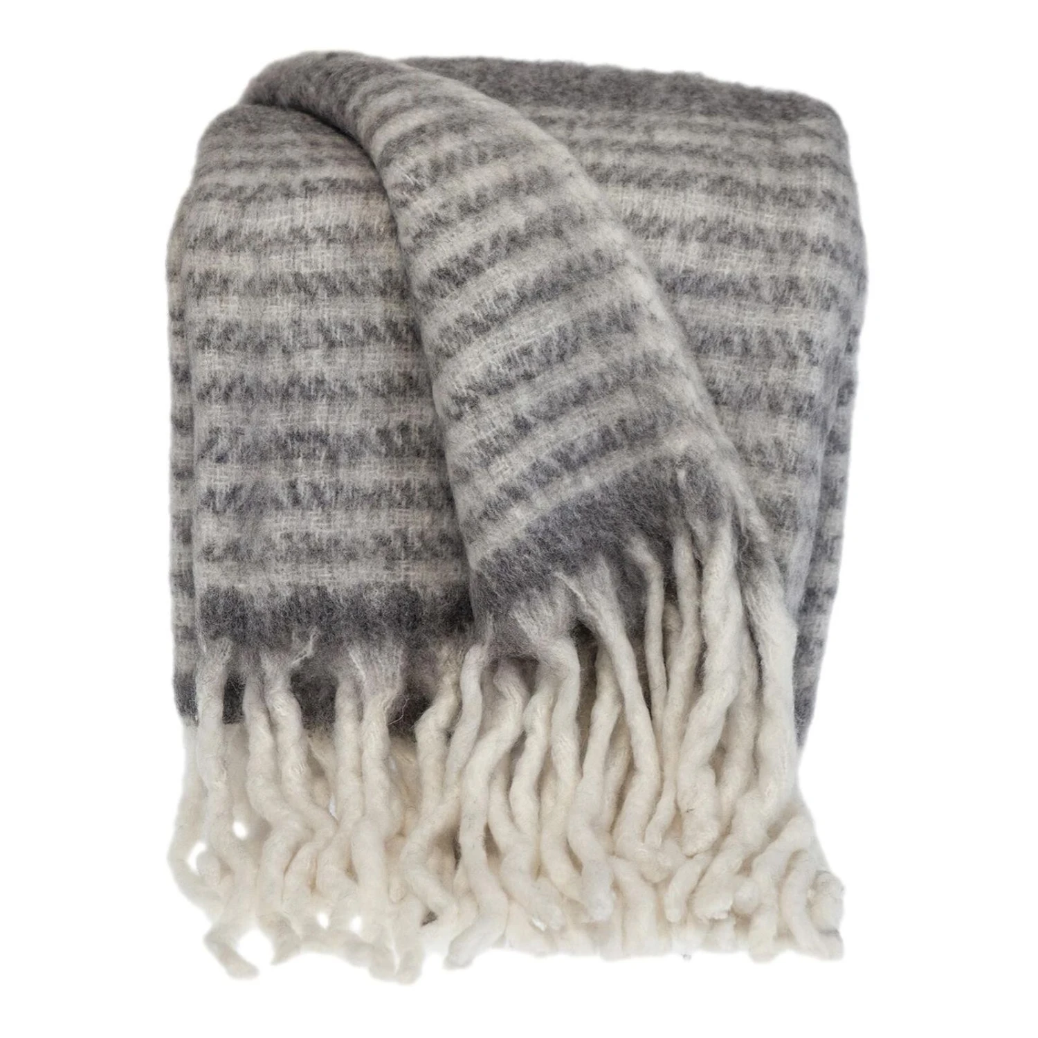 Get ready to cozy up with this Super Soft Gray and White Chevron and Striped Handloomed Throw Blanket. Hand-crafted by expert artisans, this soft and cuddly wool blend blanket with a long fringe is an ideal way to accent your space and keep warm at the same time. The beautiful chevron and striped patterns in gray and white shades will easily blend with most any decor and bring a feeling of warmth to your space. Perfect for your bed, couch, or favorite spot by the fireplace, this generous in size and fashionable throw blanket is a soft and natural way to accent your room. 67″ x 52″ x .5″.
