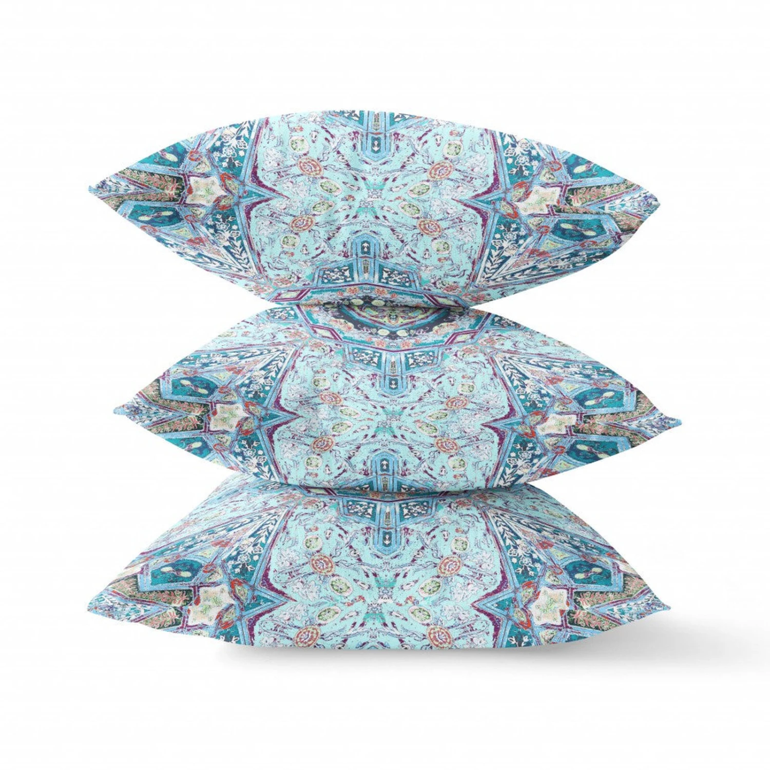 20″Light Blue Boho Flower Zippered Suede throw Pillow