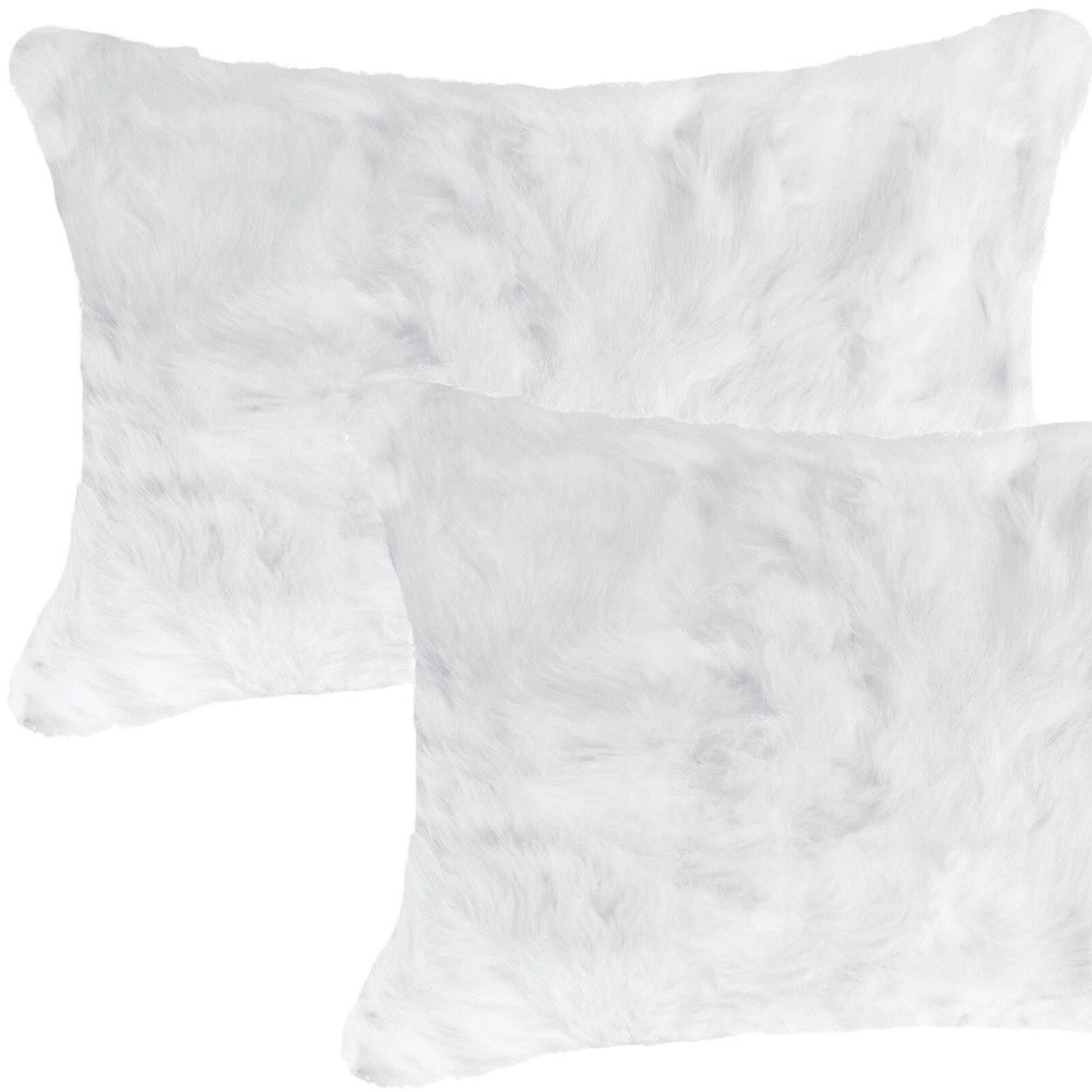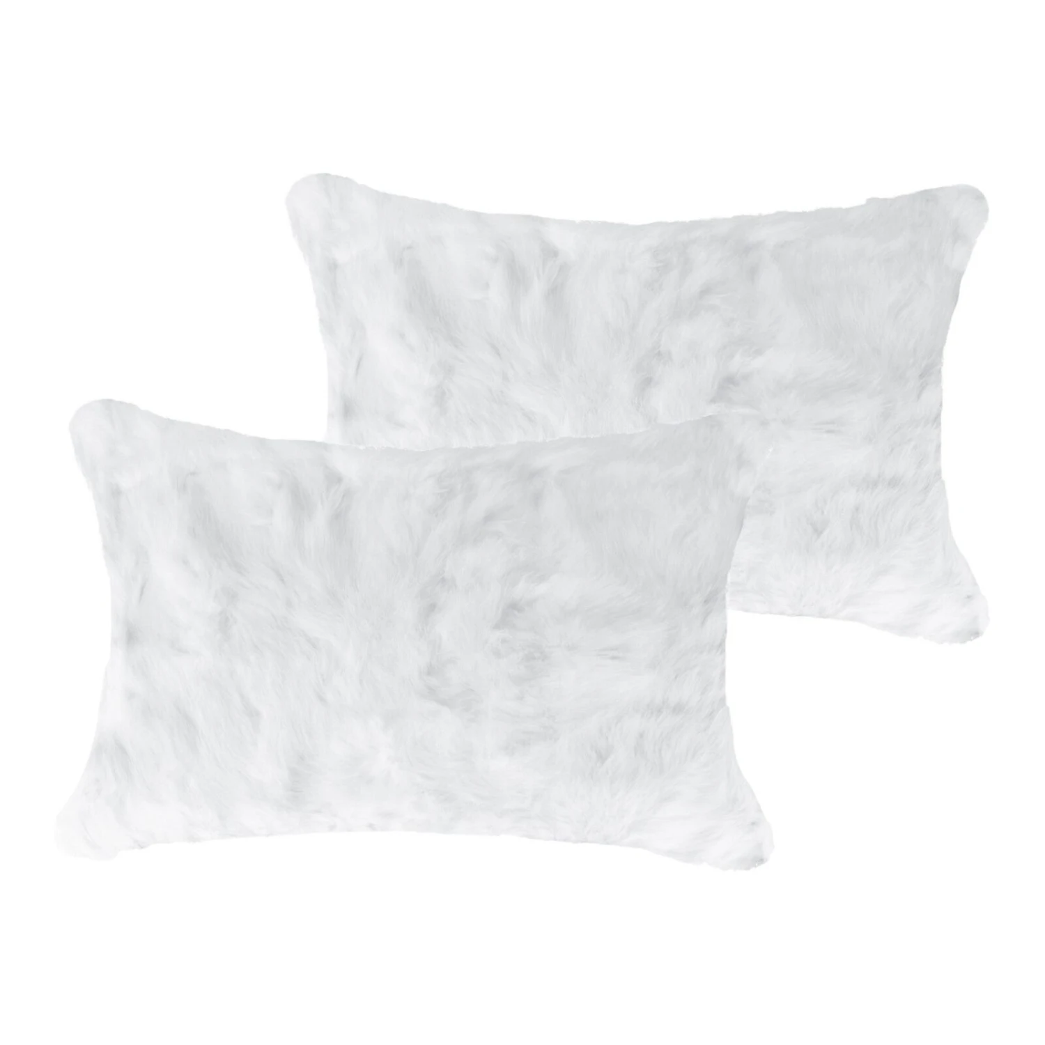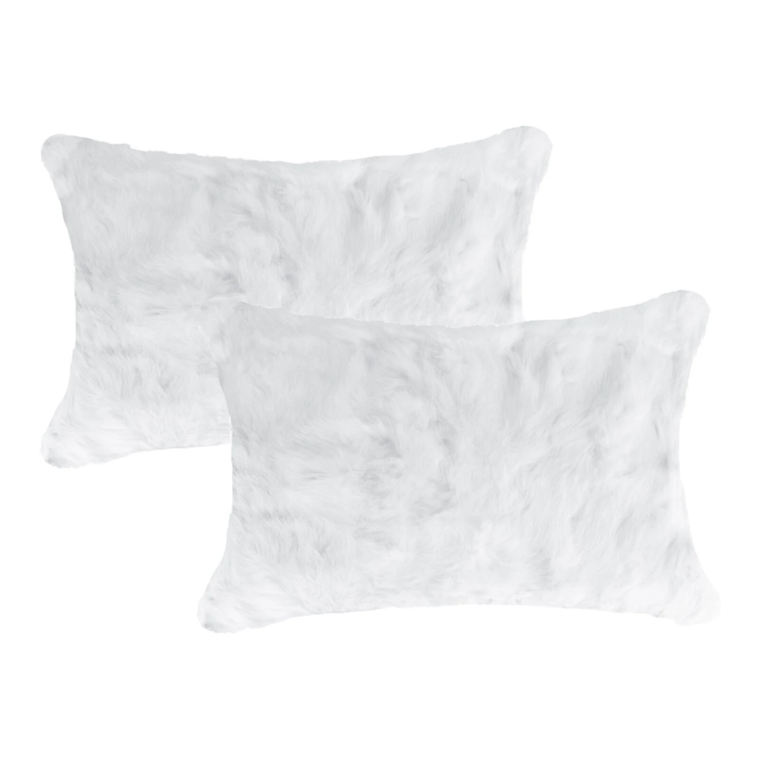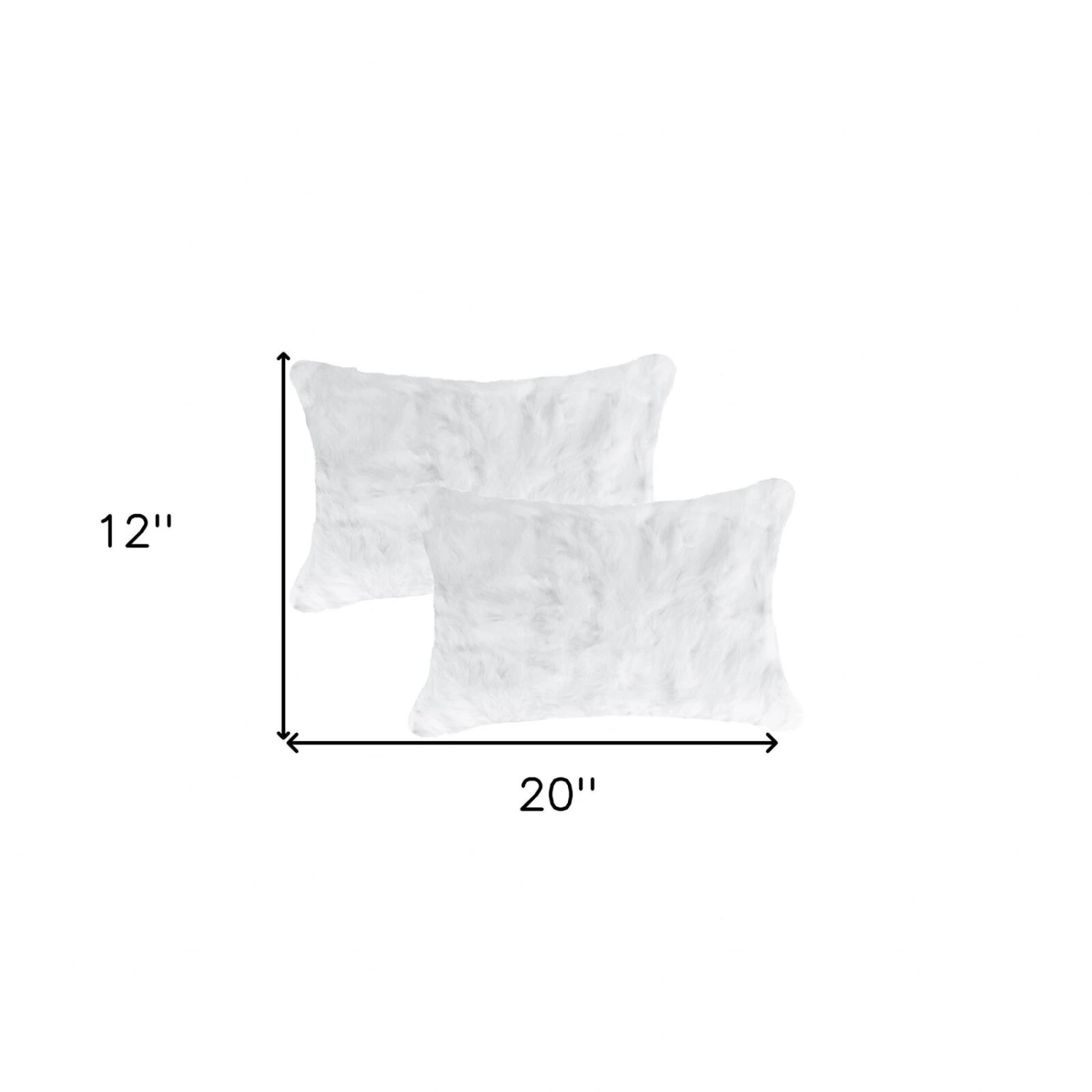 Homezia Set Of Two 12″ X 20″ White Rabbit Natural Fur Throw Pillows