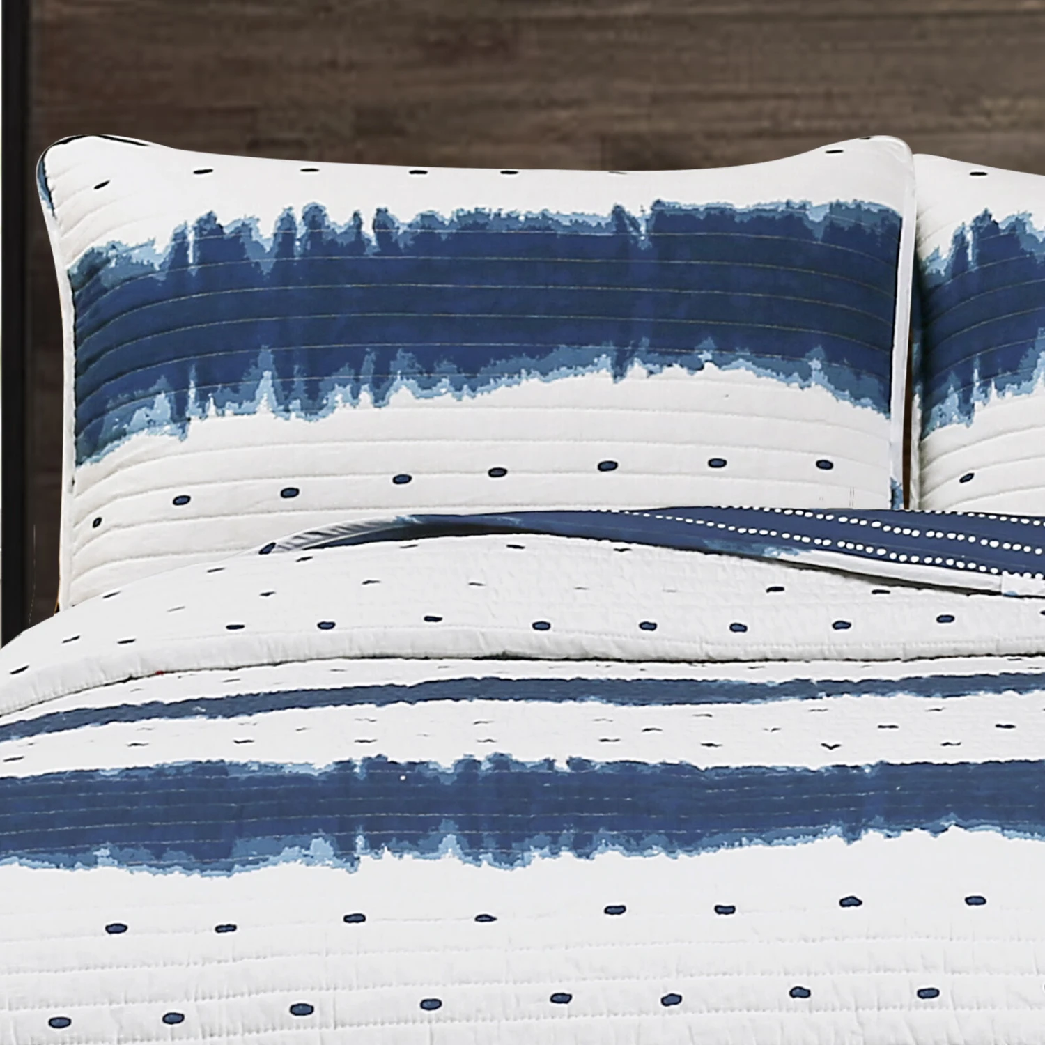 The combination of polka dots and unique stripes printed on 100% cotton create a vibrant look for any bedroom in your home. The quilt set is reversible, allowing you to change the look of your room in seconds.