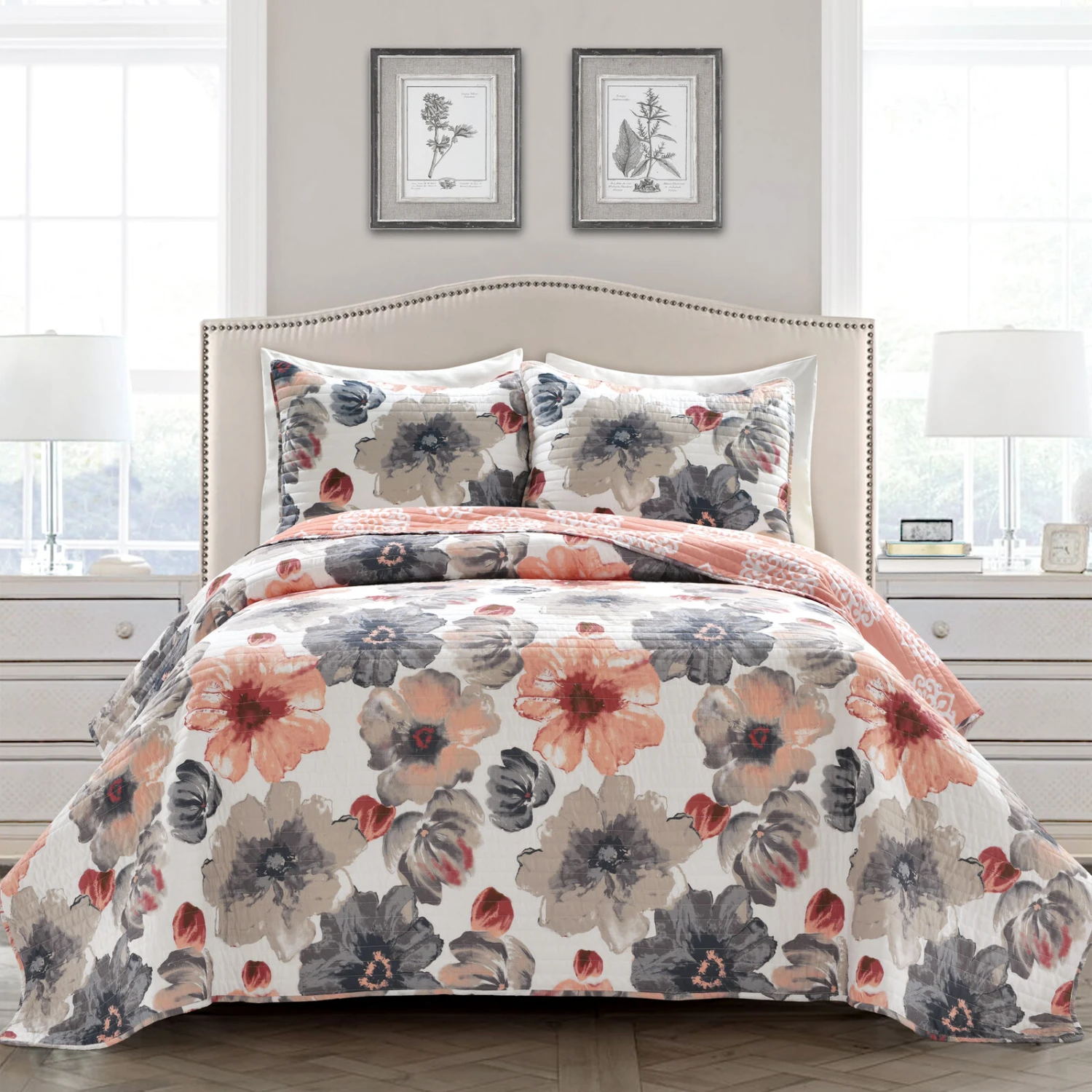 Eye popping flowers which adds elegance yet fun to any bedroom. This floral quilt set will compliment any room. Soft to the touch, reversible. Part of the Leah collection.