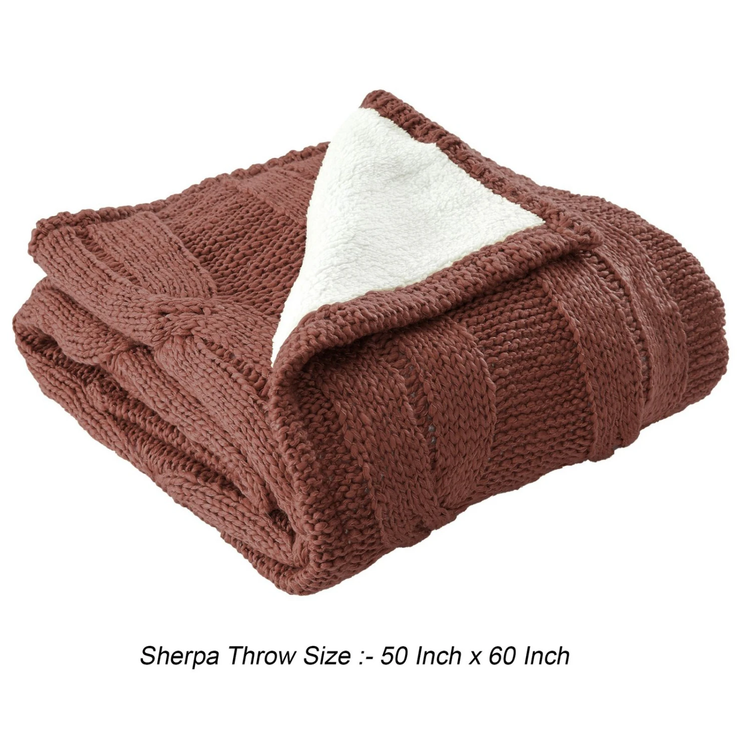 Lois 50 x 60 Throw Blanket Cable Knit and Sherpa, Acrylic
