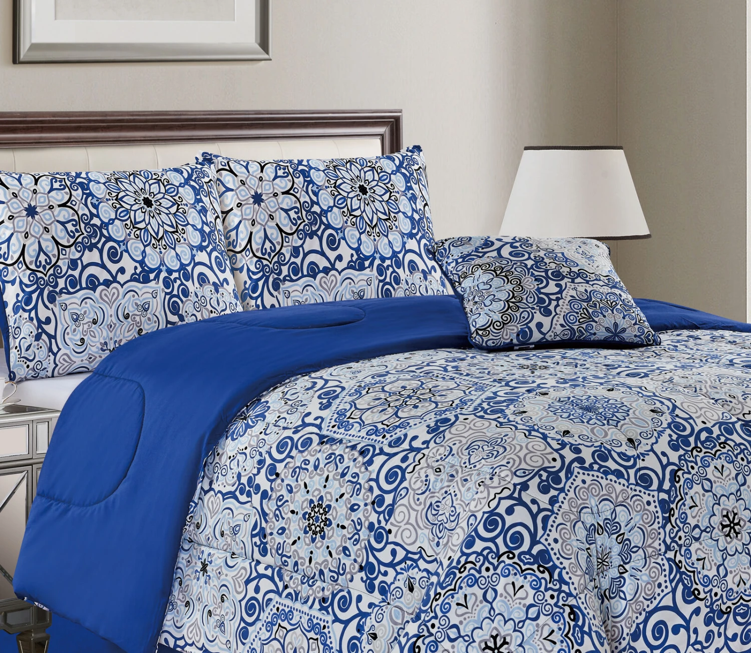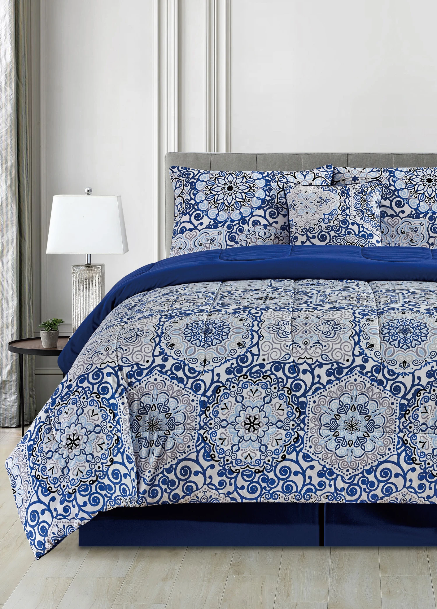 Classic style, this down 5-piece comforter is suitable for all season use and enhances the beauty of any room. The uniform tile-like stitching is versatile and suggests a feeling of stability. Comforter can be used just as a comforter or as a duvet insert to match with your favorite duvet cover in order to change up your bedding style.