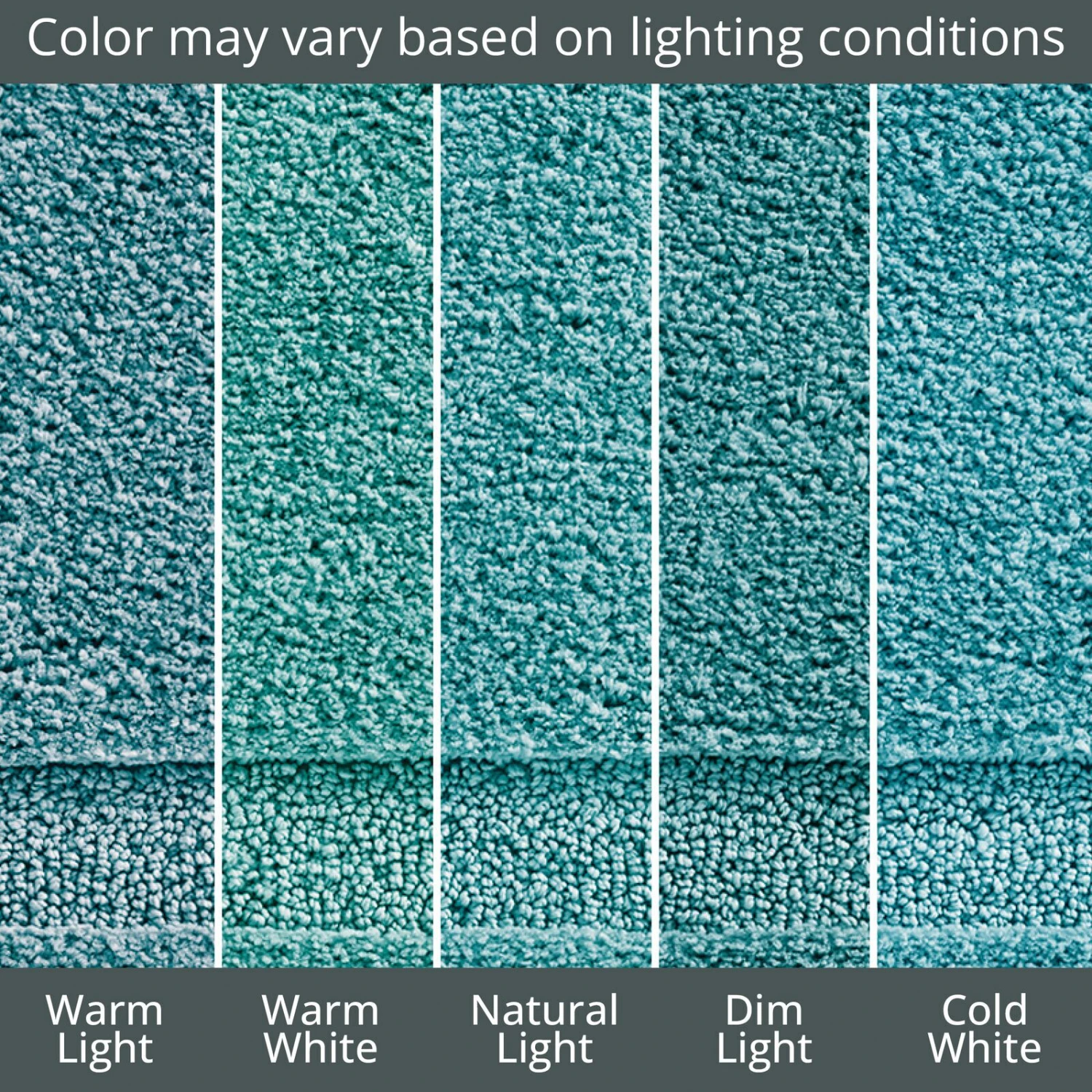 Plush cut pile is made of super absorbent microfiber yarns that dry quickly