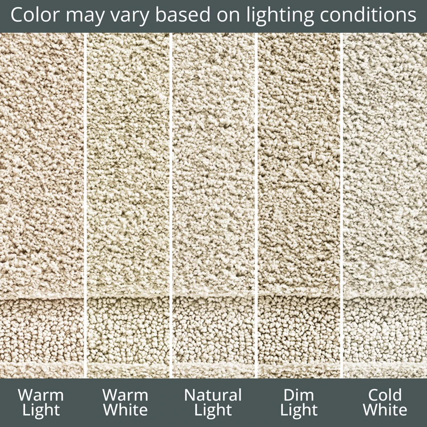 Plush cut pile is made of super absorbent microfiber yarns that dry quickly