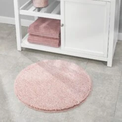 mDesign Round Microfiber Bathroom Spa Mat, Accent Rug, Machine Washable