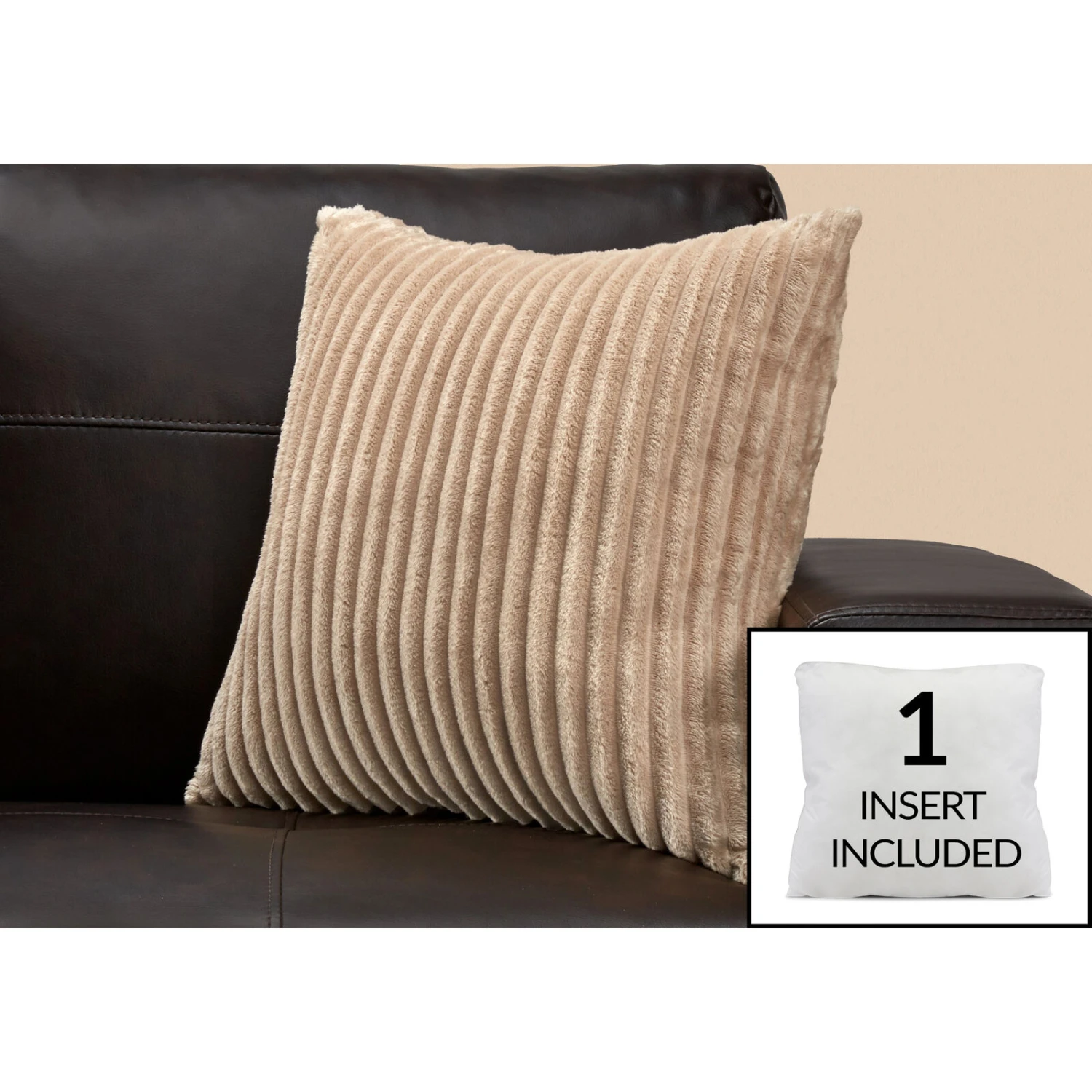Monarch Specialties I 9354 Pillows, 18 X 18 Square, Insert Included, Decorative Throw, Accent, Sofa, Couch, Bedroom, Polyester, Hypoallergenic, Beige, Modern