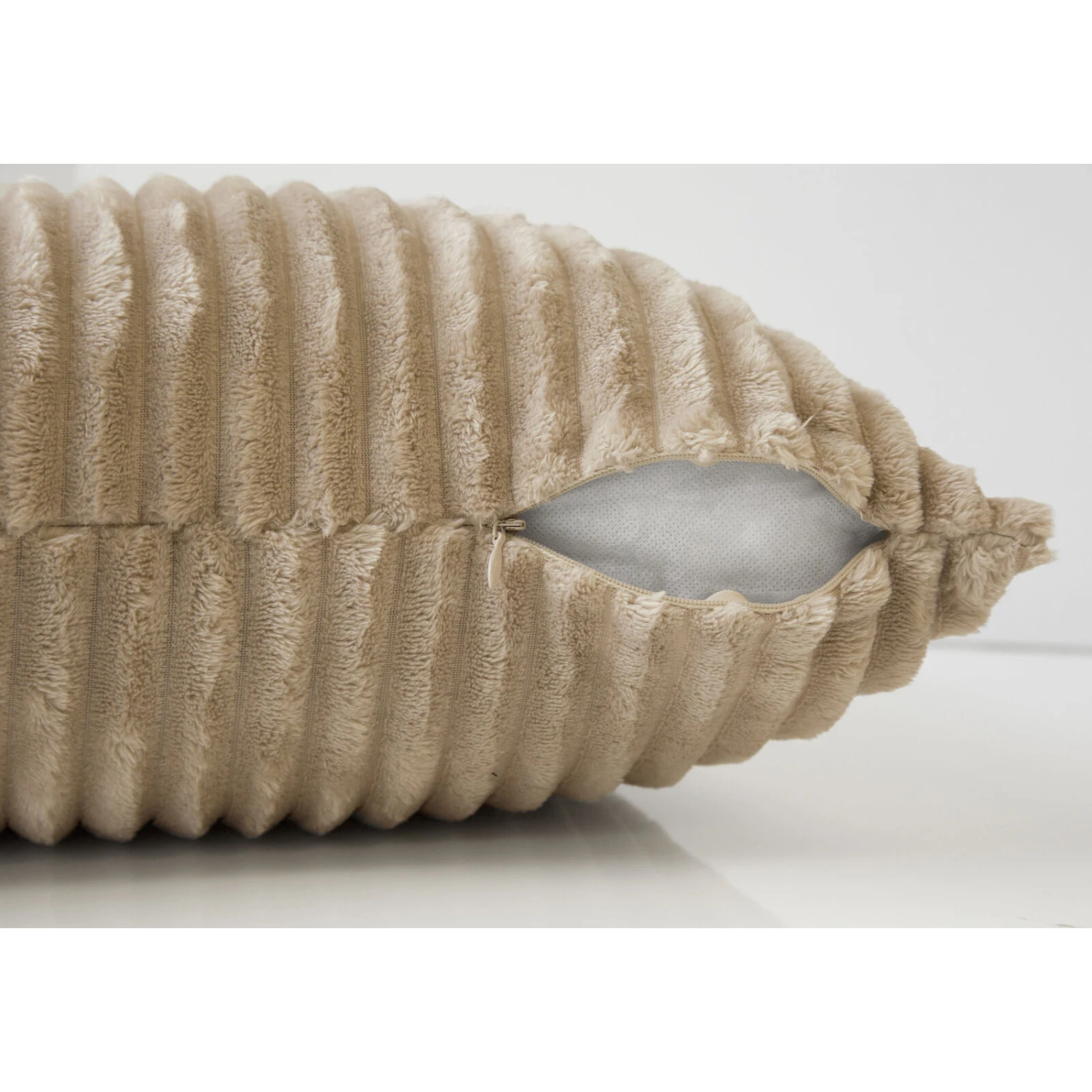 Bring a cozy look to a room with this ultra soft faux fur square accent pillow with a luxurious feel. The classic ribbed style on both sides in a chic beige color, adds a touch of casual luxury to your favorite chair, sofa, bed, or entryway bench. The soft polyester material is machine washable, with a handy side zipper to easily remove the poly fill insert that is included. Just fluff it up and watch this cuddly throw pillow add instant warmth to your home decor.