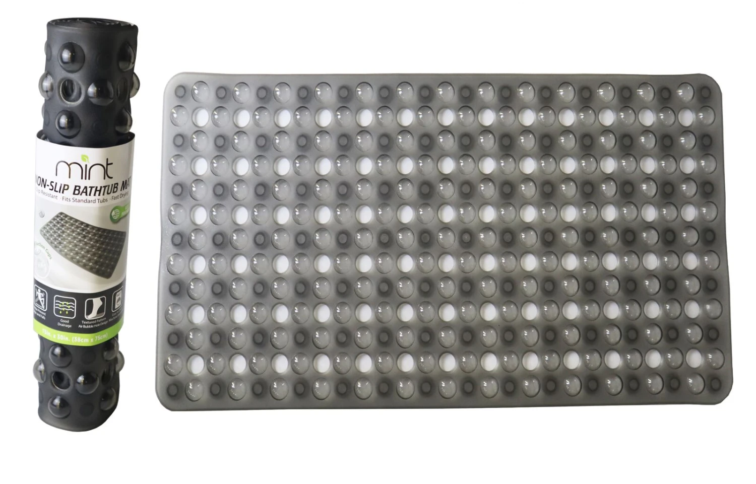 Bubble Bath Mat features hundreds of small, cushioning bubbles that gently massage tired feet. This clear bath mat is made of durable vinyl and features over 200 suction cups to provide reliable non-slip protection. Cleaning is a breeze – simply hang and air dry the mat after use, or machine wash with your everyday laundry. WARNING Designed for use on smooth surfaces only. For your safety, do not install over grout lines, voids or textured/uneven surfaces; all of which negatively affect adhesion. This product is not intended for use on refinished surfaces. Always make sure that your mat is securely attached before entering or exiting your tub, shower or other slippery areas. No anti-slip product can prevent all accidents.