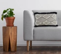 Homezia 16″ X 22″ Black And Gray Diamond Handmade Cotton Blend Throw Pillow With Fringe