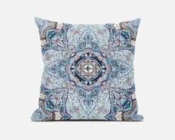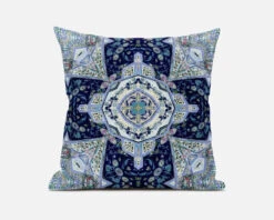 Homezia 20″Indigo Blue Floral Geo Zippered Suede Throw Pillow