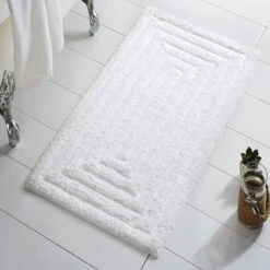 Knightsbridge Stylish And Comfortable All Season Traditional Racetrack Design Cotton Bath Rug White