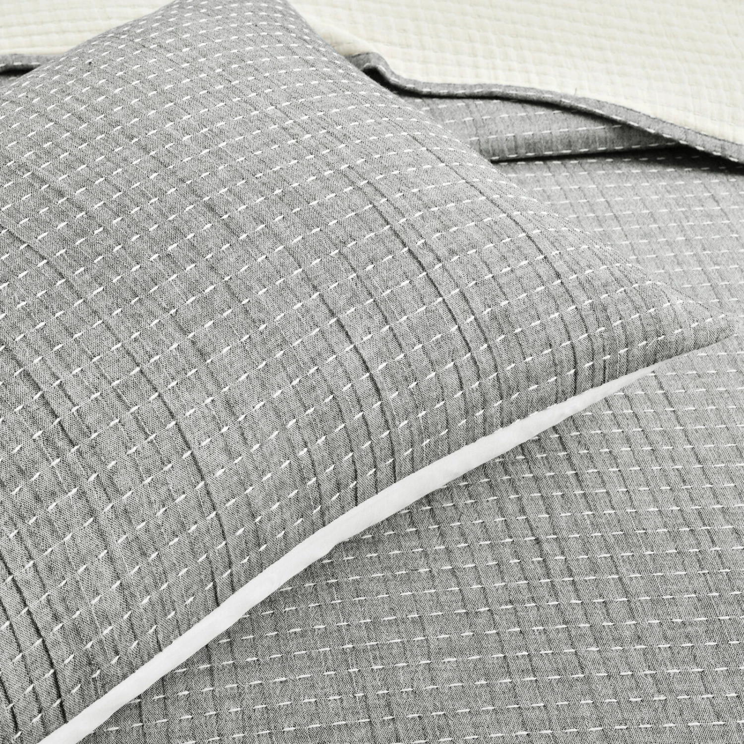 Solid Kantha Pick Stitch Yarn Dyed Cotton Woven Quilt/Coverlet 3Pc Set