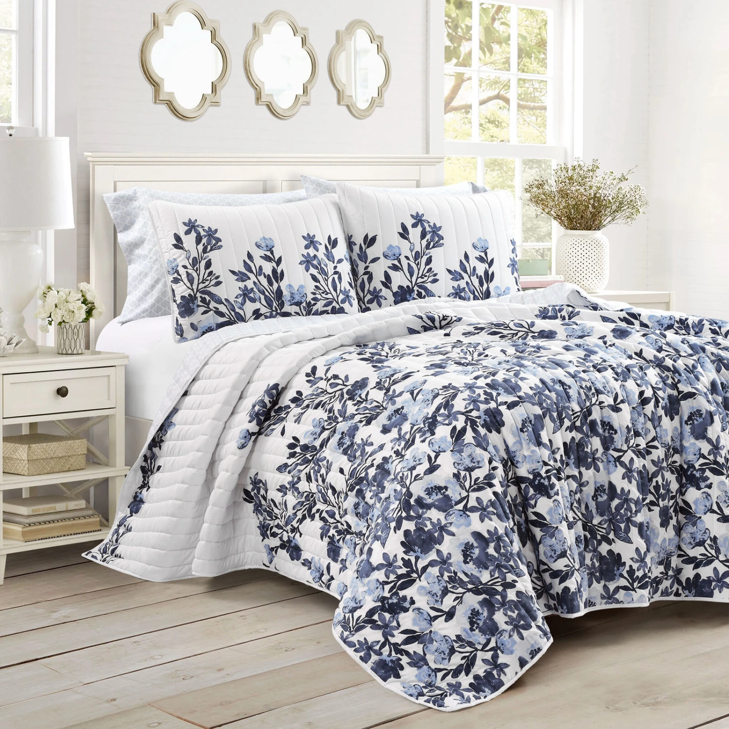 Add sophisticated style to your bedroom with this five-piece quilt set. The assemblage of flowers intertwined in growing vines offer a splendid update of traditional floral patterns. This set is ideal for anyone with a cottage charm, cottage core or farmhouse style home. Natural elements accent the inspiration behind this bedding set. Included with this quilt is two matching shams and two pillowcases. This quilt set is STANDARD 100 by OEKO-TEX® certified, which means the fabric, dyes and all components have been tested in an independent laboratory and certified against a list of more than 350 harmful substances. Please refer to the product labels for full care instructions.