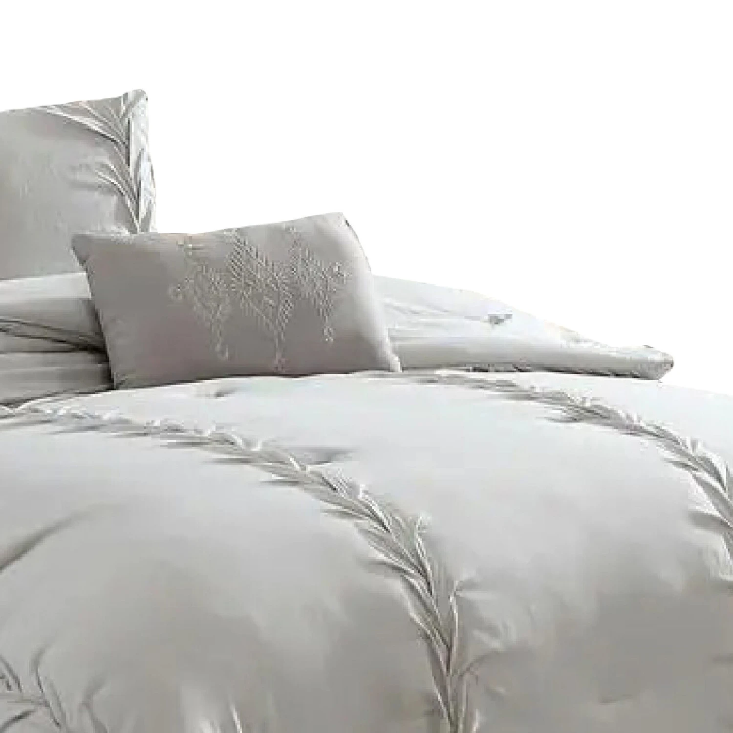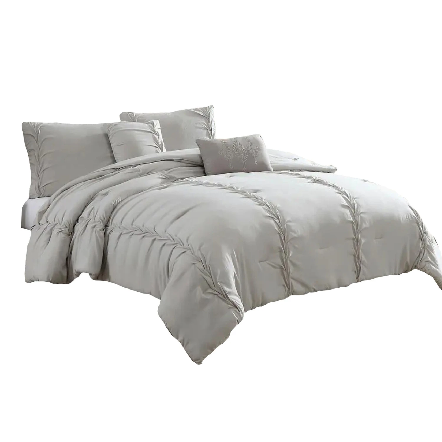 Tyler 8 Piece Puckered Comforter Set, The Urban Port, Light Gray-Benzara